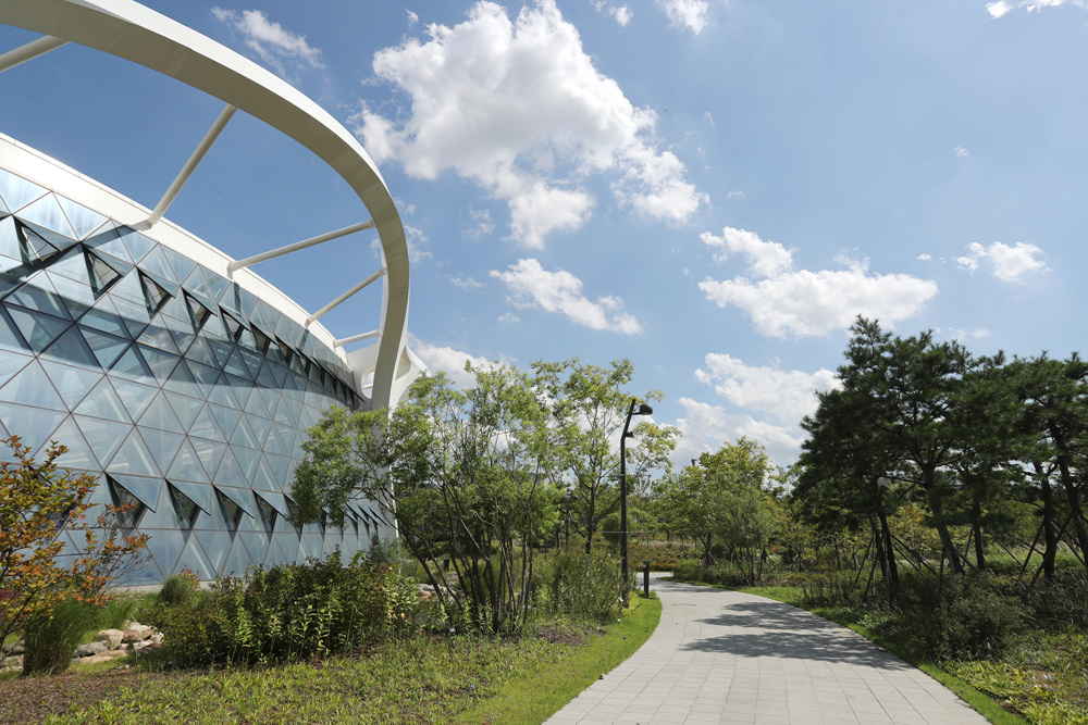 서울식물원의 시작을 알리는 공간으로, 탁 트인 넓은 숲길과 산책로가 조성되어 있어요.
