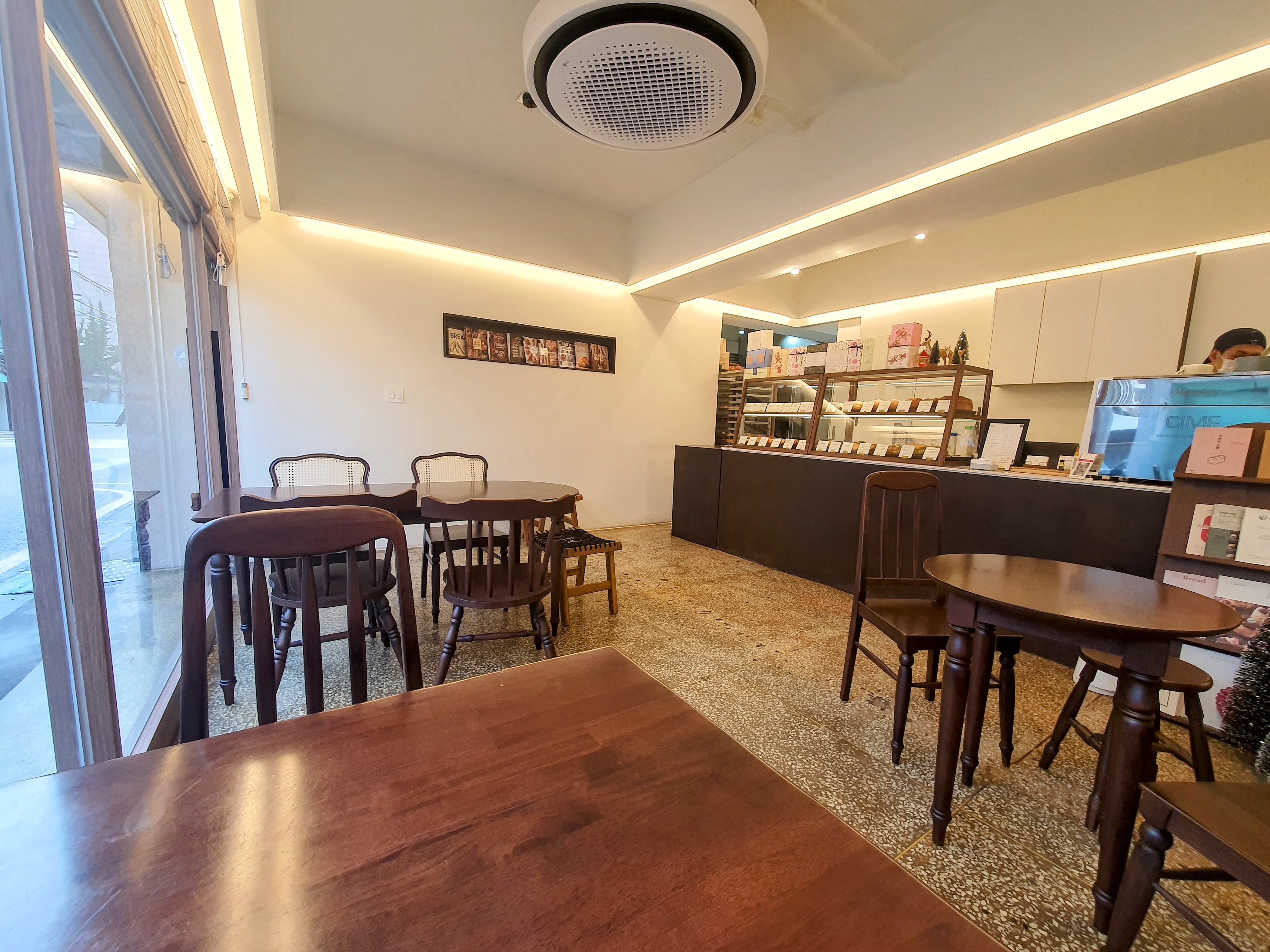 매장 내부는 아늑하고 깨끗한 느낌이에요. 모든 빵은 쇼케이스에 깔끔하게 진열되어 있어서 위생적으로도 믿음이 가더라고요. 또 많지는 않지만 매장 내 테이블도 있어서 매장에서 식사할 수도 있어요. 🪑☕