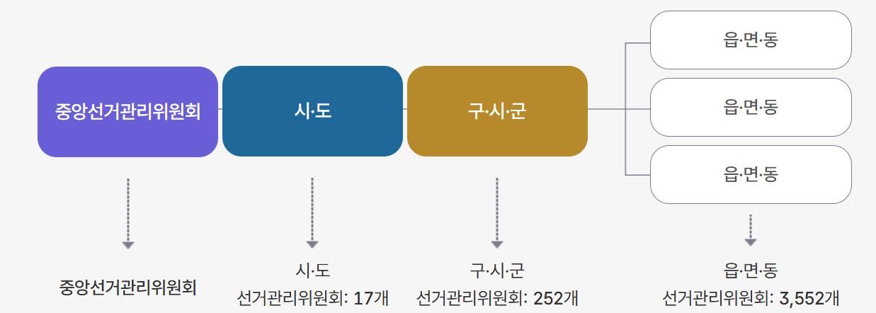 선거관리위원회는 중앙선거관리위원회와 지방선거관리위원회로 나뉘며, 중앙에서 전국 선거를 총괄하고, 지방 단위에서 세부적인 운영을 담당합니다.