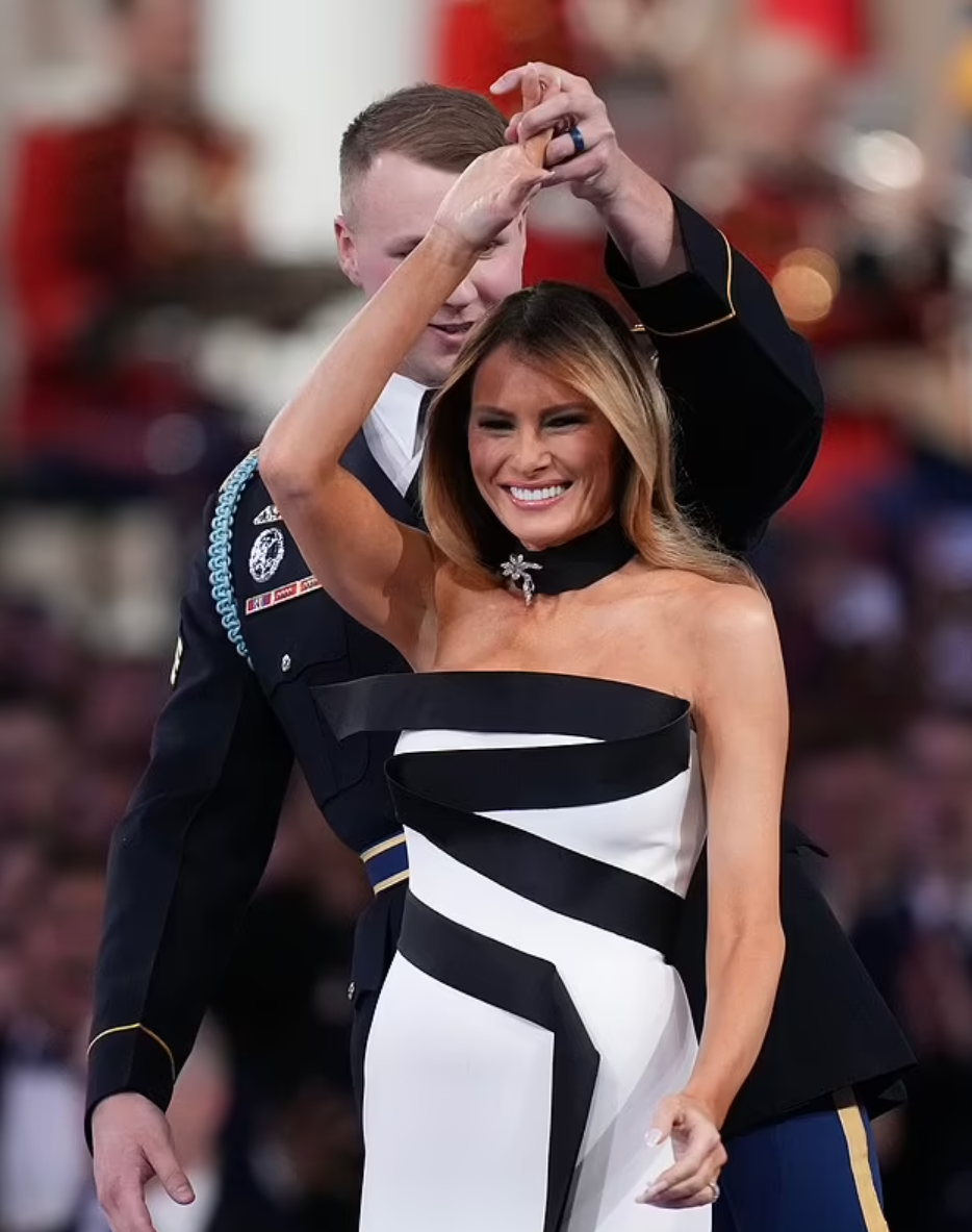 1. 멜라니아 트럼프의 2025 취임식 무도회 드레스 – Herve Pierre의 정점 🎀