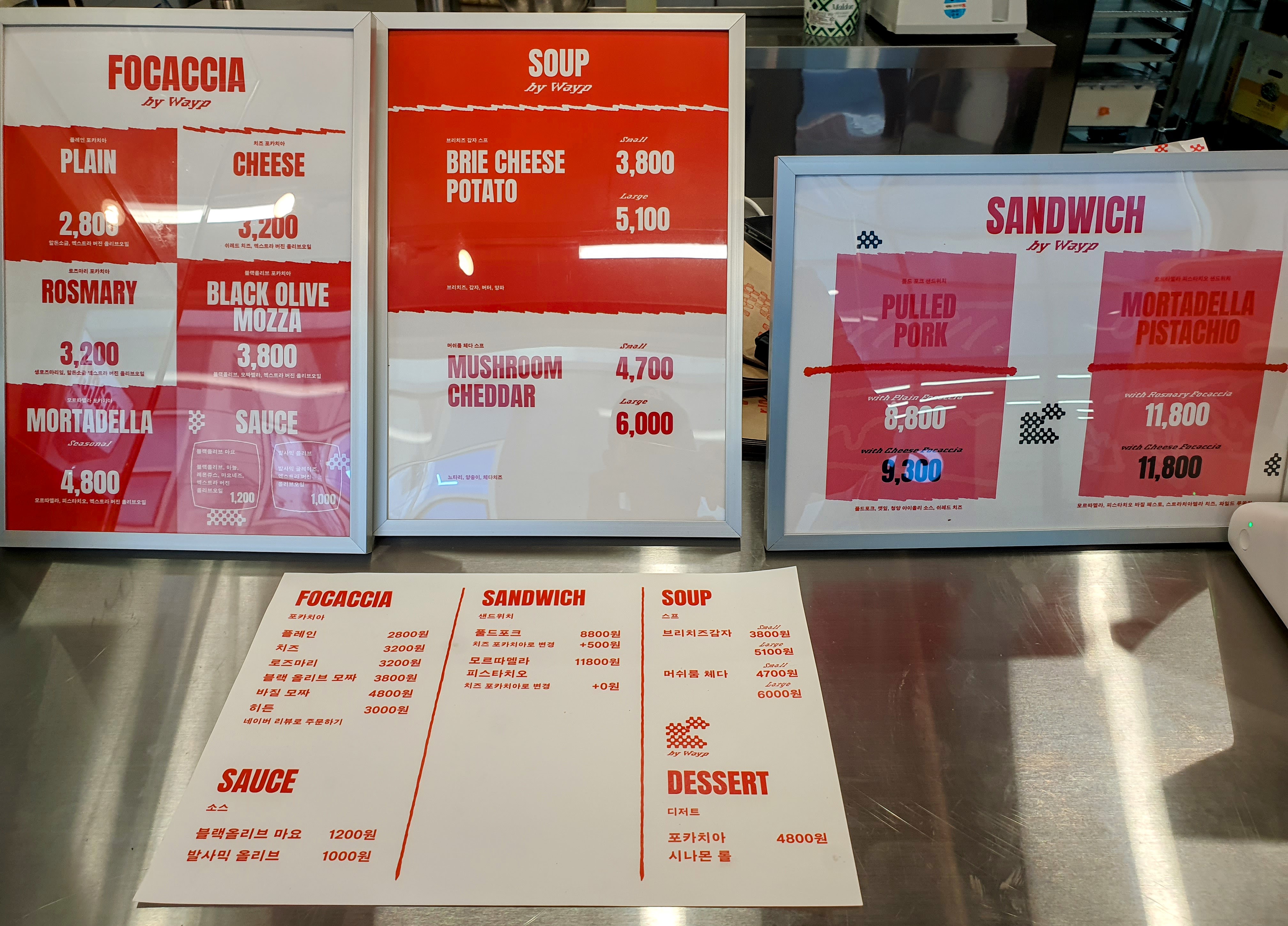이제 가장 중요한 웨이프 포카치아의 대표 메뉴들을 소개할게요!