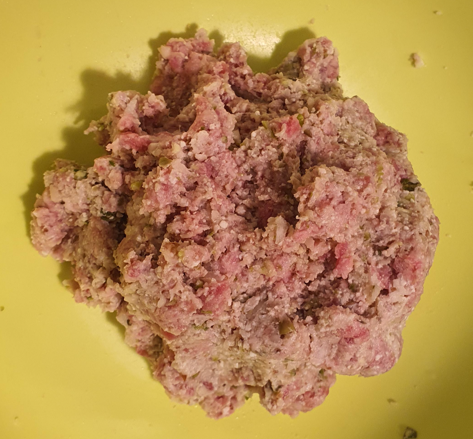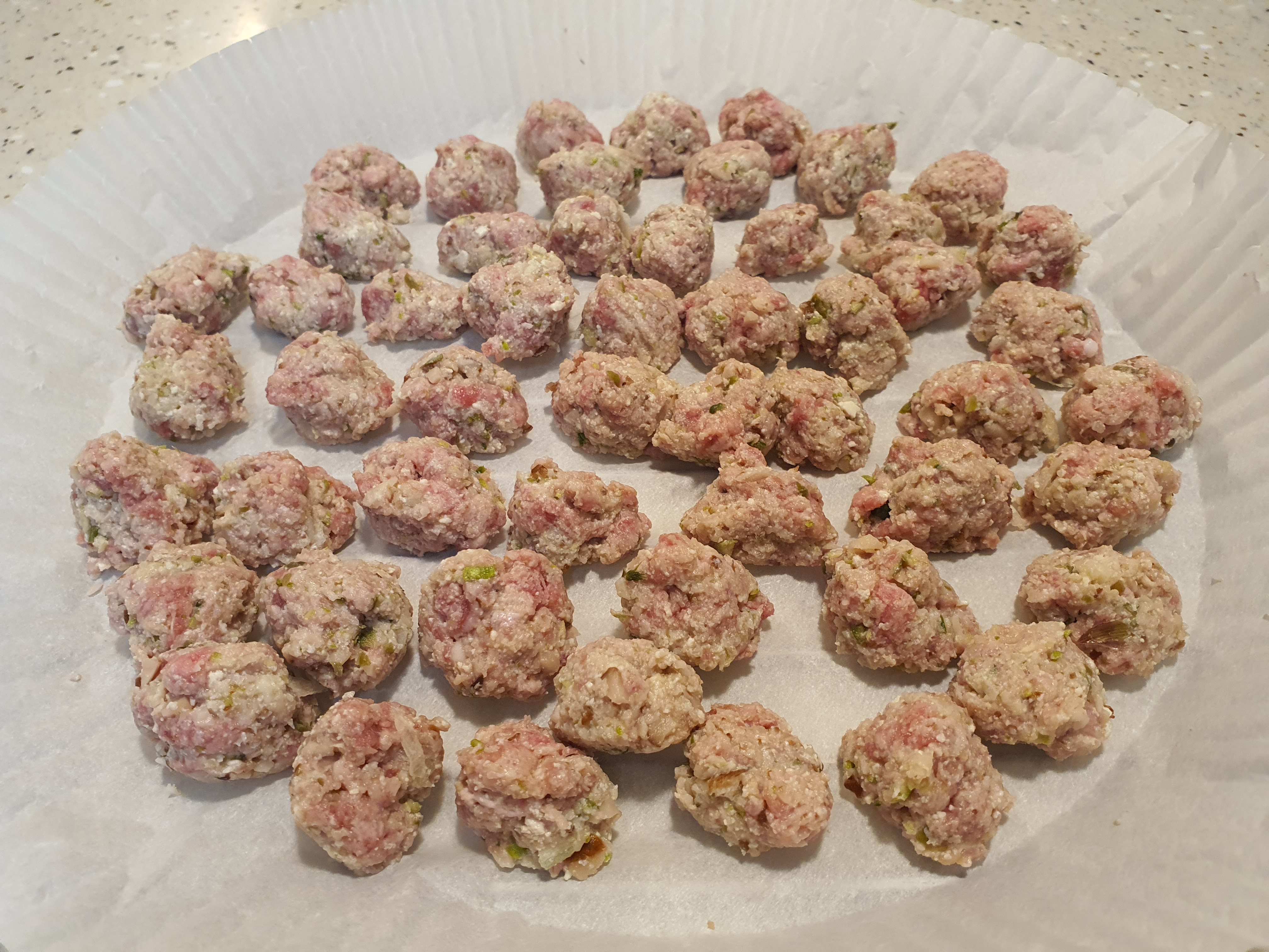 재료들이 반죽된 모습 - 아이에게 맞는 한 잎 크기로 동그랗게 만들어 완자를 만들어 주세요.