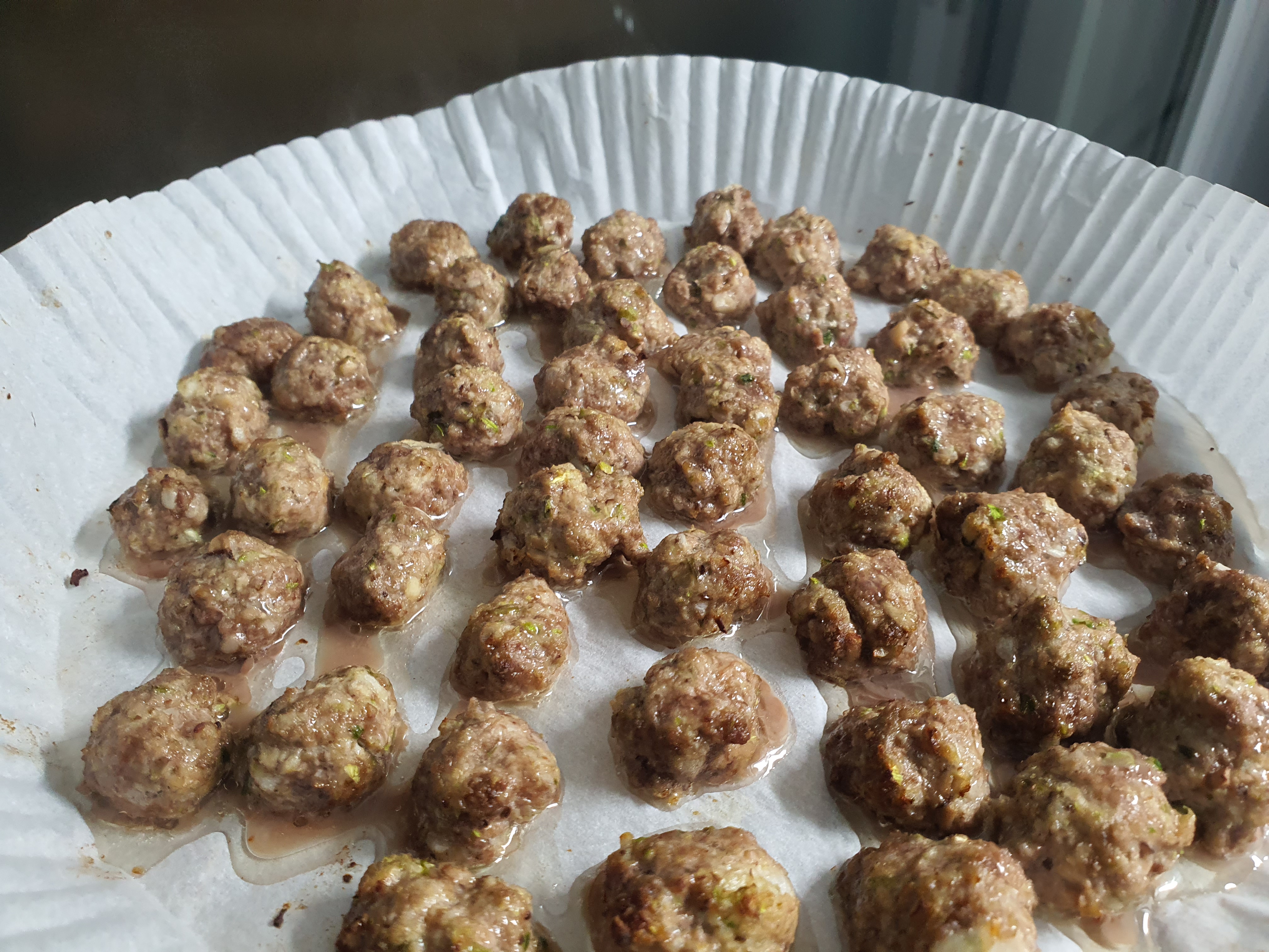 - 에어프라이어에 완자를 넣고 200도로 8분간 굽고, 뒤집어서 4분간 추가로 구워줍니다.
