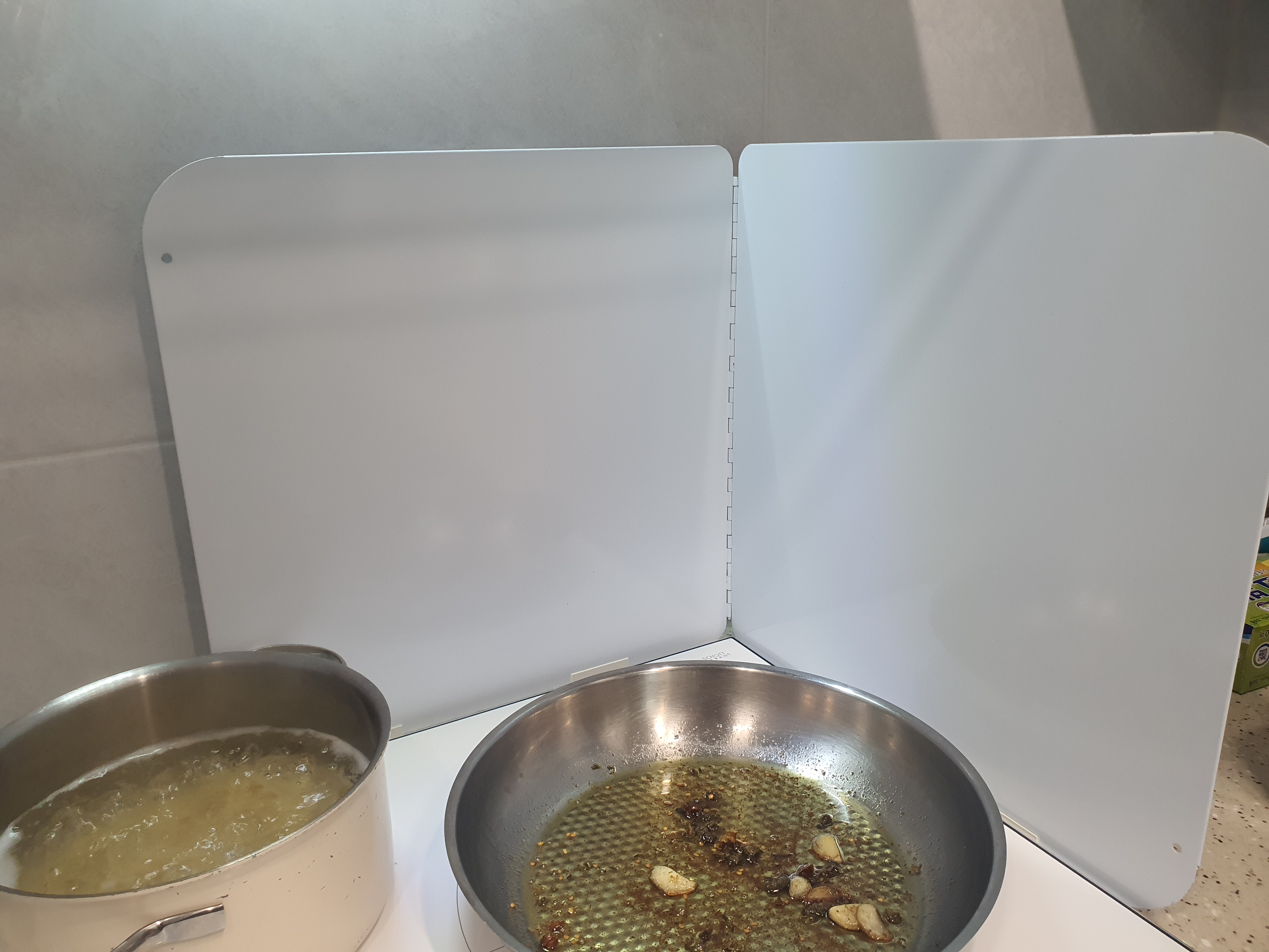 수고를 줄이고자 저는 실리콘 팬가드와 함께 '기름튐 방지 가림막'을 사용합니다! (추천 꾹 👍)